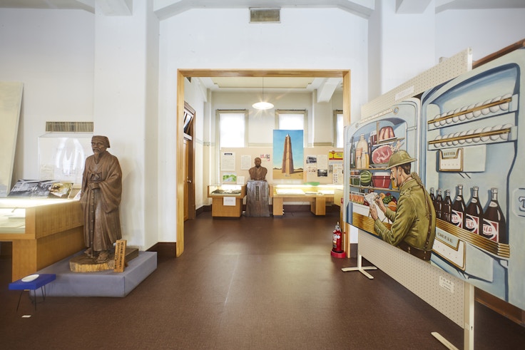 ここで「美術」と「美術じゃないもの」は共存しているが、あくまでも資料館におけるガラスケースの存在自体は近代的な分類を担っていることも見過ごしてはならない。「大地の魔術師展」(*2)に代表されるような、すべてのものを等価でフラットに扱おうとするポストモダン的な展示とは一線を画していることを強調したい。現代美術というきわめて脆く定義しづらいものたちは、この町に根ざしガラスケースによって保護されている「歴史」の上に浮遊しているだけだ、という印象を強く与えている。