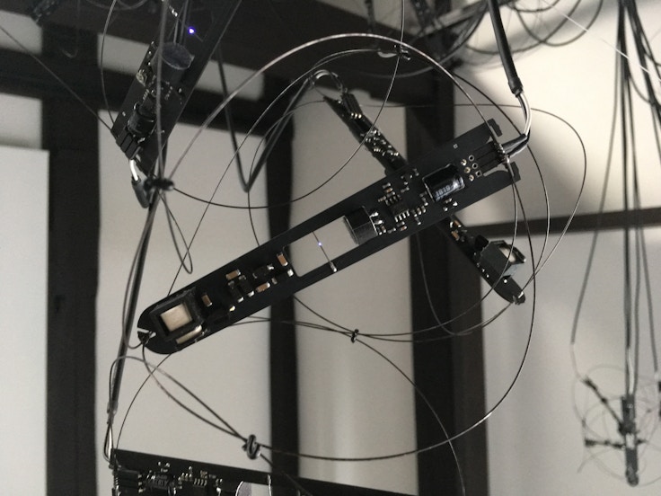 歴史的建造物群保存地区にある蔵の中で、1972年に開発された555タイマーIC(集積回路)で入出力を制御したデバイス数百個が、絶え間なく電流をスパークさせている。2004年から継続的に改訂を重ね、国内外でこれまでにも展示されてきた、斉田一樹+三原聡一郎のモイズ・プロジェクト最終版、《moids ∞》だ。