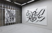 クイックターン・ストラクチャー(以下、QTS)という独自のモティーフをもとにした大山エンリコイサムの新作に心を奪われた。その理由を会場で求めてみても正直わからなかったのだが、家に帰り、模写をしているうちにわかった。それは、新しい書(カリグラフィ)だったのだ。