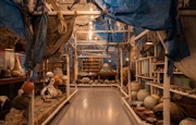 戦後を再考するはずの本展では、もはや戦前に『機械化』(1940〜1945)のイラストによって人気を博した小松崎茂の原画までもが持ち込まれ、庵野秀明、成田亨らと接続されているし、本展で明らかにターニングポイントとして空間化されているのは東日本大震災である(指差し作業員は、まさに本展のターニングポイントを指差している)。指差し作業員が指さす「3.11」以降の社会には、1800点もの現代陶芸が所狭しと並べられ、その空間を抜け出た後には、もはや岡﨑乾二郎も、榎倉康二も、李禹煥も、菅木志雄も、骨董未満の小道具たちと等価な場が出現する(岡崎の作品が本展において前半と後半の2回出てくることは示唆的である)。