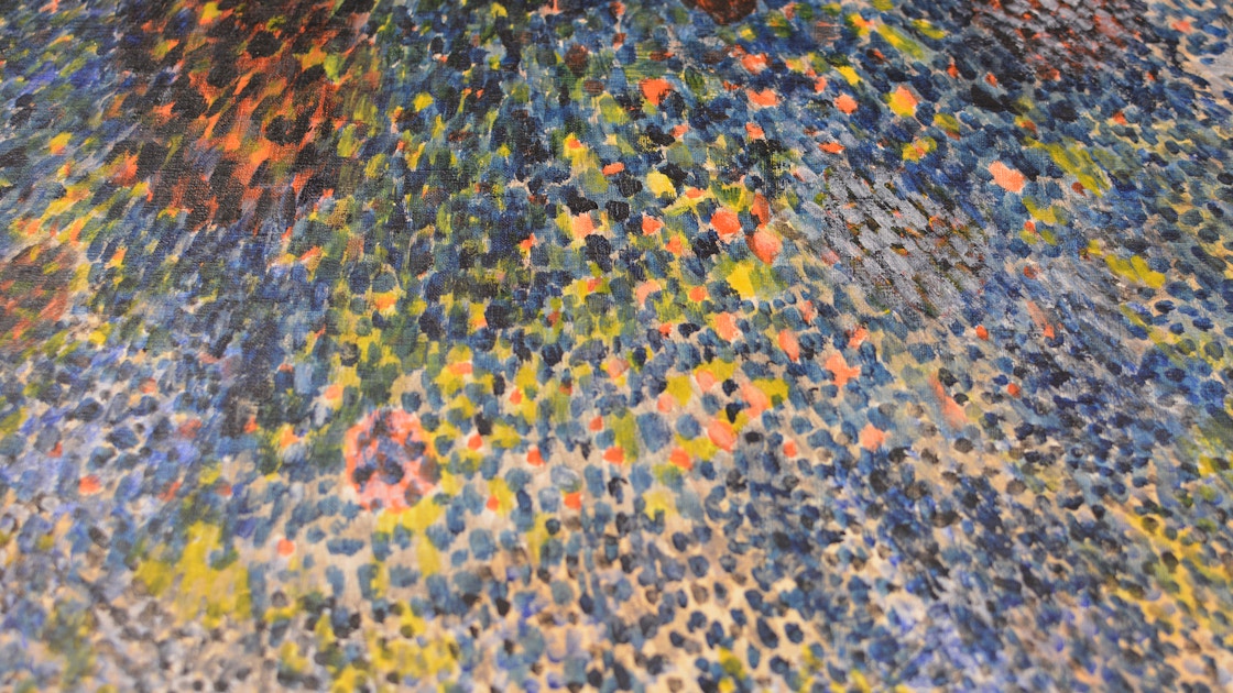 例えば今展は、「特別展示:瑛九の部屋」として、瑛九の重要作《田園》(1959)が暗室に展示され、鑑賞者が照明をコントロールしながら見ることができるというものであった。実際に筆者も操作してみたが、そこでも瑛九の点描に現れる、粒子たちの凝集と離散からなる運動への志向は明らかだった。