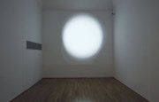 また、大阪のアートコートギャラリーで開催された今井祝雄の個展「行為する映像」では、1960年代後半~80年代前半の映像作品を展示。初の映像作品《円》(1967)は、パンチで1コマずつ穴を開けられた16mmフィルムを投影したものだ。手作業による穴の位置の微妙なズレによって、投影される円は微細に振動する。フィルムの物質性、「1秒24コマ」という時間の可視化が、平衡感覚を揺るがすような知覚体験とともに体感される。また、「ビデオ・パフォーマンス」として行なわれた《オン・エア》(1980)は、「アニメーションを放映中のブラウン管テレビ」がビデオカメラで撮影されつつ、記録した磁気テープによって梱包され、物質化した「時間」の包囲網によってテレビ画面が次第に覆われていく。だが、オリジナルは16mmフィルムやビデオテープで撮影されたこれらの映像作品は、DVDに変換され、液晶モニターやプロジェクターを用いて展示されている。ここでは、「『時間』を自己言及的に扱った映像メディアそれ自体が被る時間的変容」が、「作品外」ではあるが不可分な要素として浮上し、「タイムベースト・メディア」を取り巻く「時間の痕跡」を何重にも示していた。