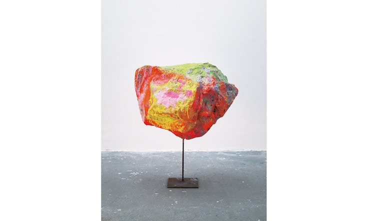 結局、13名の作家のうち見応えがあったのは、スターリング・ルビーの立体と、ウーゴ・ロンディノーネの作品《2014年6月22日》であった。両者とも、過去の作家(ジャッドと河原温)による「絵画の死」後の絵画の延命と純粋主義に対する、不遜にしてユーモラスな批判である。ルビーの主体は、抽出された絵画の純粋骨格(箱)を、分割したり引っ掻いて汚すことによって、ただの物質的存在へと世俗化するものである。区切られた平面という枠に入れればなんでも絵画になるという、その枠を河原は「1日」という時間枠に重ねることで、あらゆるものを受容できる絵画を描いたのであった。対照的に、継ぎはぎされたキャンバス(?)に、角に塗り残しを見せつつ、臭うほど分厚い絵具で描かれたロンディノーネの巨大なレンガの壁は、馬鹿らしいほど巨大化・物質化したレイヤーであり、それは行き止まりの壁ではあるが、しかし後ろに回れる舞台の書き割りであり、しかもタイトルも制作開始日にすぎない。