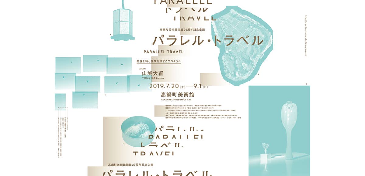 高鍋町美術館は開館20周年を記念し、今回初の現代美術の試みとしてインディペンデント・キュレーターの石川吉典をキュレーターに迎え、山城の個展を実現させた。また山城は、出品作《Synesthesia Garden(シナスタシア・ガーデン)》制作のために音楽家の角銅真実(かくどうまなみ)とのコラボレーションを行った。展覧会を準備するにあたり、山城たちは古墳をめぐり、海で泳ぎ、焼酎を飲み、名産の鶏、牛、豚肉や天然牡蠣の味を堪能しながらこの土地の風土を肌で感じ、想像力をふくらませていった。「外」から来た人間だからこそ見えるヴィジョンが「パラレル・トラベル」の中に結実している。