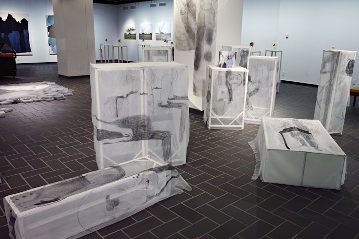 これらのグループ展は内容から見て、とくに「女性」を打ち出していないものも当然ある。しかし、過去を振り返れば歴史に埋もれて脚光を浴びることのできなかった女性アーティストは数多くいた。だからこのように展覧会を通じてアーティストが発表し、成果や記録を蓄積していくことは当たり前に思えるが、極めて重要であることは改めて指摘しておきたい。「エゴイメ・コレクティヴ」の作品もそれぞれジェンダー、移民、アイデンティティなどのテーマを多彩なメディアを用いて各々表現している。いつでも声の小さな者に気づくことは困難であるし、誰もが何かしらのマイノリティでもある。だからこそ、絶えず誰かの叫びやささやきに耳を傾け、問い続ける意味がある。