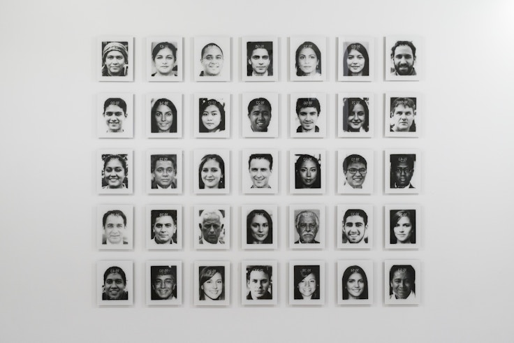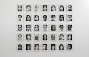 このような時間の重なりは、実在しない人物を自動生成させるウェブサイト「This Person Does Not Exist」でAIが合成した35枚(実質的には無数)のポートレートを転写した《#selfy》に浮かび上がるデジタル・デヴァイスの時刻表示において──字義通り──いっそう前面に表れている。転写されたデヴァイスの時刻表示は、非実体的に生成される人物と現実世界との接点となるが、写真に撮影日時を入れるようなあり方での過去の保存ではない。それは、相川が暗室のなかでタブレット端末を起動し、その明かりで映したAIによる画像(それぞれが別のデータ作成日=瞬間をもつ)とともに印画紙へと露光し、転写され、反転した時刻であり、それゆえ過去の保存というよりむしろ──プロシージャルなゲーム空間と同様に──無限に現れ続けている名をもつ必要のない非実在的な人間、すなわち本来的に画像として誕生してくる表面しかない二次元世界に、現実へと移行するための時間を「与える」ものである。