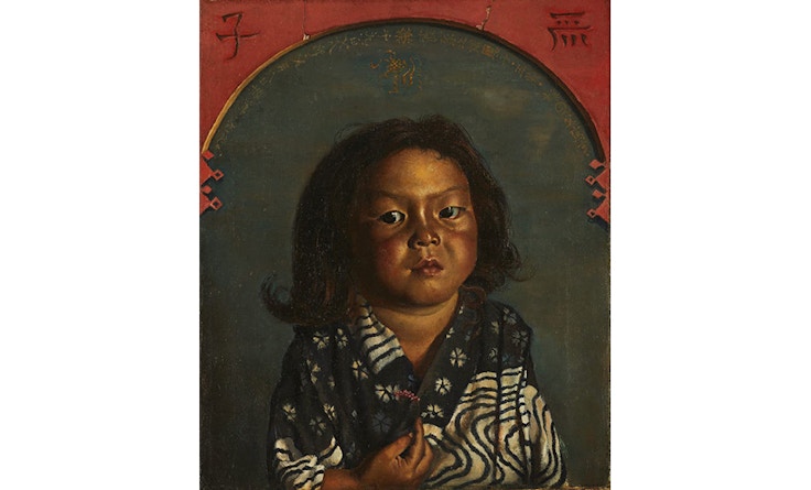 また、画面上に作品の情報を飾り文字などで記入することは、劉生が影響を受けた、北方ルネサンスの画家たちによる単独肖像画によくみられる意匠だが、それに倣ったことも幸いした。意外にも劉生は絵画の装飾性に肯定的だったようだ。
