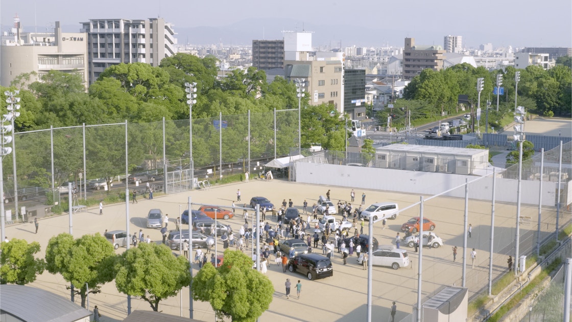 《突然の風景》の本体となる作品発表は、2019年5月26日に「1日限りのアート作品」として、茨木市中央公園北グラウンドで行われた。作品内容は、茨木市民から借り受けた16台の車をグラウンドに配し、各車に1音ずつ、音階設定されたクラクション音をあてがうことで、全体でひとつの音楽を演奏するという状況そのものである。20世紀初頭の未来派音楽は、急速な社会変革への反応として都市の騒音を音楽に取り入れ、前時代の価値観への挑発とした。「車のクラクション音」というフックは「不快な体験」──「現代アート」なるものが、またしても私たちの平穏を揺るがそうと仕掛けてくる──を懸念する市民感情を形成するものだ、と予期できるだろう。とすると、この「クラクション音」は、近代以降に繰り返されてきたアートと社会の対立構造を、あえてこの地域アートプロジェクトのベースに設定する仕掛け、ととらえられるかもしれない。