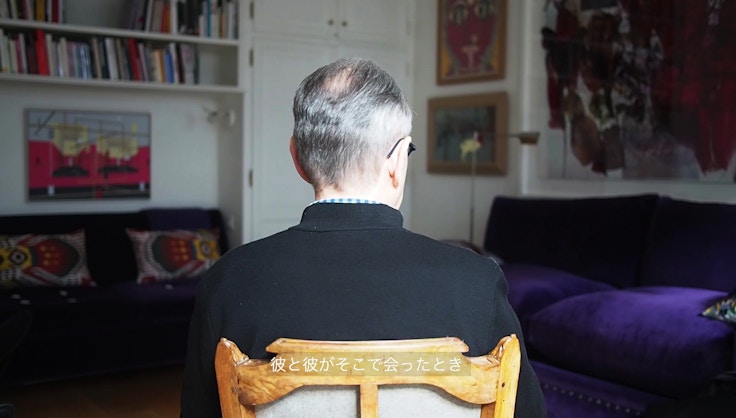 彼方の男 2019 HDヴィデオ(マリア・ブルームとミシェル・クラウラとヘルマン・ダレッドとミシェル・ディディエールとルディ・フックスとイヴ・ヘヴァルトとカスパー・ケーニッヒとジャン=ユベール・マルタンとフィリップ・ファン・デン・ボッシュのインタビューを記録した映像の断片によるシークエンス) 116分15秒 追悼=イシ・フィズマン Courtesy of the artist and MISAKO & ROSEN, Tokyo
