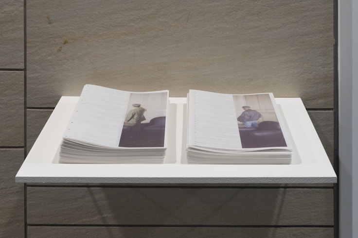 会期中に限り、会場となっているアートセンターのアーカイヴでは2枚に切り分けられる前の2人の写真を、資料体の一部として閲覧することができる。縁がわずかに変色し、ピントがわずかにずれた写真に写る、写ることを拒否する2人の後ろ姿は、フランスのオワロンで1993年6月2日に撮影されたと記録されている。2枚のリーフレットにおいて、左側の「彼」が反転され、右側の「彼」と重なっていたことを知る。