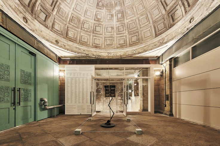 美術に関わる者にとって、上野はひときわ縁が深い。時には公園を抜けて講評やシンポジウムのため、東京藝術大学方面に向かうこともある。そんな折、東京都美術館の脇を抜けて木立ちをくぐり道に出るたび、必ず目にするのが今回の会場、旧博物館動物園駅だ。旧と付くのは駅としては廃止されていて、それでも取り壊しにならないのは鉄道施設として初めて、東京都選定歴史的建造物に選ばれているからだ。