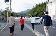 まず、やはり小森+瀬尾の共同名義での作品『波のした、土のうえ』(2014)でも描かれた、岩手県陸前高田市の津波に流された土地の上に嵩上げ工事によって築かれた新しいまち、その「2031年」(すなわち震災から20年後の未来)を舞台とする、4つのモノローグからなる物語『二重のまち』(2015)を瀬尾が執筆した。それから、4人の「旅人」──古田春花、米川幸リオン、坂井遥香、三浦碧至──が選ばれた。4人はいずれも小森+瀬尾と同じく被災者=当事者ではない。旅人たちはそれぞれに陸前高田に赴き、その土地を自分の足で歩き、その土地に生きる人々からさまざまな話を聞き、そうした見聞(を小森のカメラは逐一つぶさに撮影していく)と、そこから得た感慨や思考を各自持ち帰って、ほかの旅人たち、そして小森+瀬尾と共有していった。そうしたフィールドワークとフィードバック、ディスカッション等を重ねたうえで、最後に4人の旅人は『二重のまち』を朗読する……。