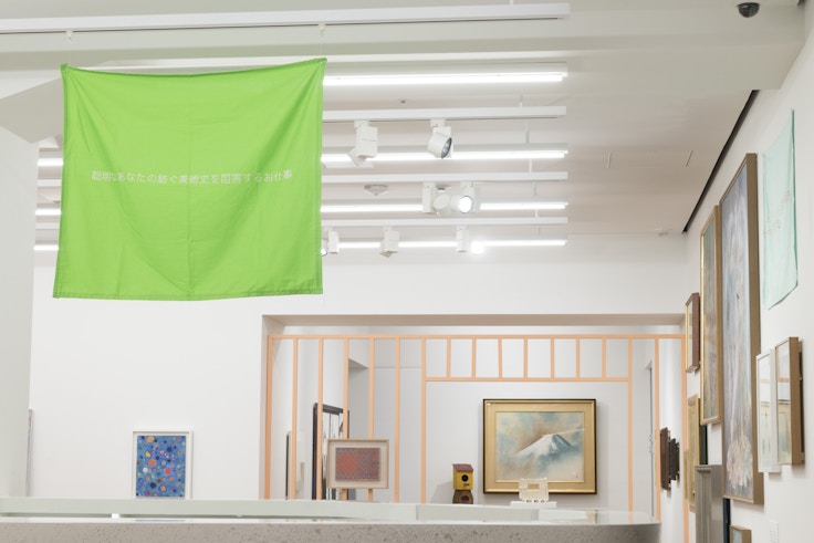 本展主宰者の梅津庸一の作品群がまず来場者を出迎え、分け入れば若手作家が、日本美術史上の著名作家が、いわゆる団体展系の作家が、日曜画家が──そうした帰属を誇張するように──入り混じる。展示冒頭、国家元首(?)たる梅津はこの百貨の様相について次のように述べる。「日本という場所は大陸から渡って来た人々の吹き溜まりと言える」「いまや『現代アート』は全体を把握することが不可能なほど膨張したプラットフォームとなりつつあり、様々なクラスタがなんとなく軒を連ねるだけのたんなるフードコートのような場所になってしまった」(本展ステートメント「小さな独立国家の構想画」より)。