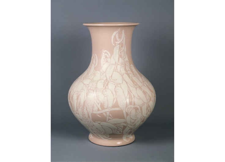 展覧会は全5章で構成されており、第1章から第4章では最初期の収蔵品を、最終章では「京都市美術館 開館の記録(1928-)」と題して開館前後の資料を紹介した。展示作品47点はいずれも、大礼記念京都美術館時代に開催された初めての所蔵品展示「本館所蔵品陳列」(1935[昭和10]年)に出展されたものである(「最初の一歩」展は「本館所蔵品陳列」の再現ということになる)。記念すべき最初の収蔵となったのは、榊原紫峰の《獅子》(1927)と(五代)清水六兵衞(六和)《大礼磁仙果文花瓶》(1926)の2点の寄贈品である。また購入による収蔵第1号は、満州国建国1周年を記念して描かれた岡田三郎助の《満州記念》(1933)だった。1934年に開催された3つの展覧会(開館記念展「大礼記念京都美術展」、第15回帝展、再興第21回院展)の出品作のなかから、主に30代から40代の中堅・若手作家の優品を積極的に購入または寄贈を受けることで、本館所蔵品の「原点」ができあがっている。