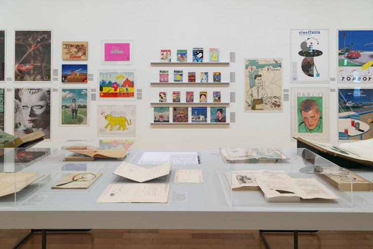 世界地図と、(「水丸事務所」がそのなかに見つけられるように)安西が事務所を構えた南青山の地図は、対象とする地域のサイズの(しかも、きわめて大きな)違いこそあれ、むしろそれこそが中原が書くような、「光をあてるというその光の角度」の差異なのだと本展は主張する。簡易的には「さし絵。図解」(*1)と説明される「イラストレーション」の、別の、もしかしたら本質とも言えるのかもしれないとらえ方の提案への強い意志は、中原のテキストを含むパネルが貼られた壁面を中心にして、その両サイドにも壁を建て、それぞれ地図を展示するという方法からも明らかだ。
