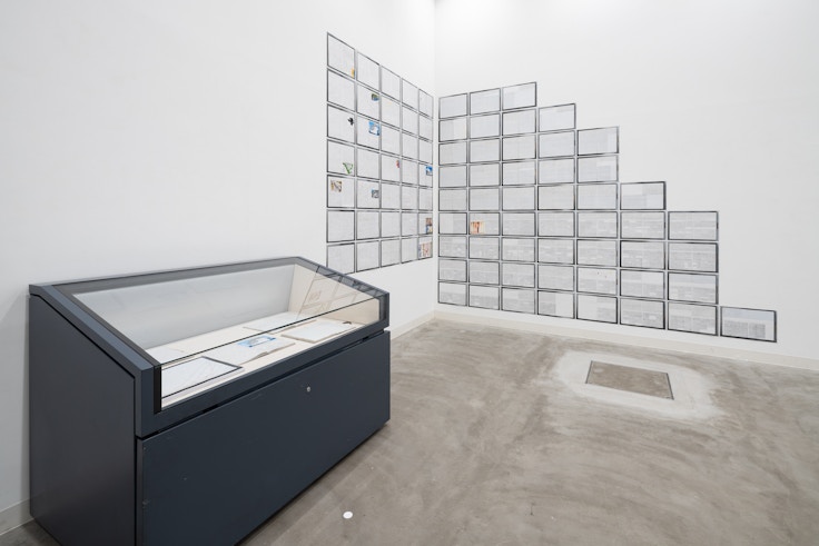 こうした他者との関係から作品を生みだすという方法は、もうひとりの出展作家である山口啓介の、複数人で反−戦争画を描くという危うい実践とも通じている。ゆえに筆者には、小さな文字で感染報道や社会動向をびっしりと書き記したノートやスケッチ、展示ケースに収められた下書きのパッチワークや協働者の間で交わされた膨大な書簡こそ重要ではないかと感じられた。