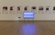 個展の大部分を占める2020年の新作は、ユビキタスなネットワーク社会における「クラウド=雲」をテーマとした8種類のインスタレーションで構成され、それに3点の旧作が加えられていた。どれも人間と動物(病原菌)、存在と不在、異なるフレーム間(メディア間)の交通という作家の基本的なコンセプトを組み合わせた展開形として理解できる。最大のインスタレーション《雲(枕/高床式倉庫)》は、コロナ禍で強制休業中の世界各地の劇場関係者に依頼して、無人の劇場に10分間座りそのあいだの音を録音してもらったもの。ジョン・ケージの《4分33秒》が、通常は劇場で不在(演奏を邪魔しないミニマムな存在)を演じる観客の沈黙のほうを存在へもたらしたとするなら、泉はそれを逆転させ一捻りして、事実としての観客の不在によって、劇場空間自体の音を存在させるとともに、それが録音であることによって、その音についても現前と不在を重ね合わせる。各劇場の席番号とともに各地の無人空間の音が再生されて、ホワイトノイズが個展会場を満たしていた。
