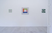 KAYOKOYUKIで開催された諏訪未知の個展「3つの世界」を訪れた際、これらの絵画作品に正位置はあるのだろうか、と素朴な疑問を持った。というのも、展示されたすべての絵画作品が正方形のフォーマットに統一されていて、幾何学的もしくは装飾的な形象が画面の等方性を保持するかたちで配されていたからだ。