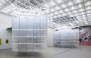 しかし、精密に考案されたディテール、例えば画面の合成や特殊撮影に主に使用されるグリーンとブルーの色、すなわちクロマキー(Chroma Key)で内部が構成された壁体の通路(*8)、そしてその間を通過する粒子のように入り込んでいく観客には、自ら《ソル・ルウィット逆さま―21倍に拡張され開かれたモジュールの立方体》(2020)、《ソル・ルウィット逆さま―3倍に縮小された、構造物》(2020)と《音がでる家物》を舞台化させることも、《九角形ドア開閉》に別の次元に移動することも、トロンプルイユ(*9)のように、あたかも2Dを介して3次元的へのタイムスリップをすることもできる《DMZ非行》(2020)のように、あらゆる「仮定」が開かれている。無心に繰り広げられたものたちに注目するときに初めて、視覚言語化されたヤン・ヘギュの文法は解読されることになる。