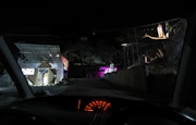 雨がそぼ降るなか、京都市内から滋賀県大津市へ抜ける夜道を車で走る。急カーブをいくつか曲がったところで、車が急停止する。ヘッドライトの灯りのきわに照らし出されたのは、2頭の鹿だ。鹿と車がぶつからずに済んだことに安堵しつつ、これから体験する「ドライブイン展覧会」への期待に胸を膨らませる。
