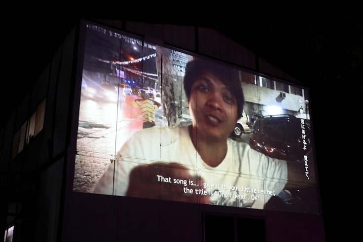 まず、日没後のみの開催という設定であるが、これは堤自身も述べるように作品周囲のノイズを減らすためにほかならない。山中suplexの敷地内を車で移動しながら順に作品鑑賞をするにあたり、明るいと作品以外の要素(雑多に置かれた各種の資材や生活の痕跡、およびここを拠点とするアーティストの姿)がどうしても目に付く。日没後であれば、それらは暗闇に溶け込み、映像作品や、スポットを浴びた立体作品のみが鮮やかに姿を現すわけである。