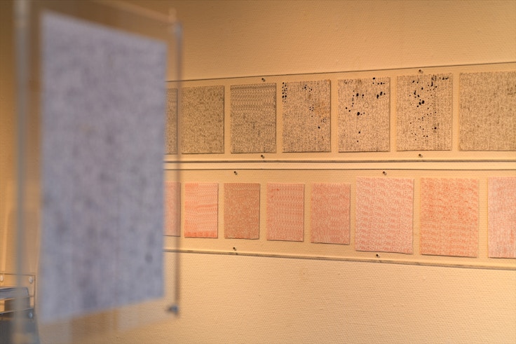 ボーダレスアートミュージアムNO-MAで開催された「文字模似言葉」(もじもじことのは)展は、美術家である今井祝雄によってディレクションされ、今井を含めた11人の作家によって声、文字、言葉へのそれぞれのアプローチが展開される。