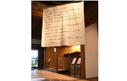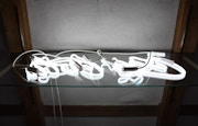 庭を抜けた先の蔵では、国谷隆志の作品が展示されている。暗がりで光るネオン管は、台座に伏せて置かれることで一見して読むことができないが、床から見上げるように覗き込むと実は意味のある言葉になっていることがわかる。3次元で一筆書きにされた文字は、向きによって読めるにもかかわらず、複雑で抽象的な存在として振る舞っている。