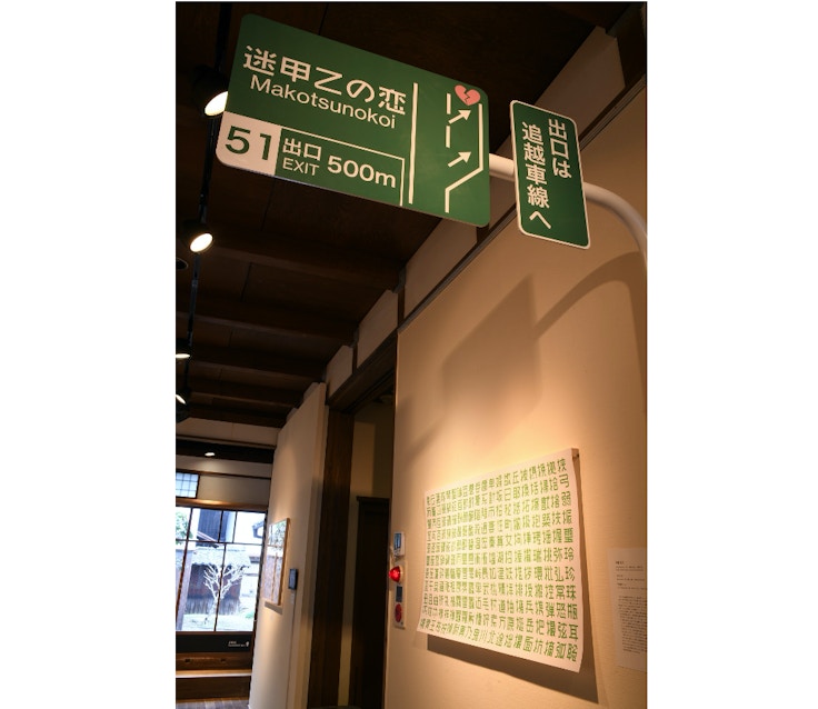 1階では、鈴村恵太、清水ちはる、元永定正、八巻清治、今井祝雄、林葵衣の作品が展開される。高速道路のフォントに興味を持つ鈴村は、エクセルを駆使して独自にそのフォントを増殖させていく。鈴村によってつくられた《高速道路フォント》と実際の看板を模した《迷甲乙の恋》が鑑賞者を迎える。丸みを帯びた独特の筆跡のひらがなで紙が埋め尽くされた清水の《心のままに》は、一見可愛らしくも見える文字でありながら、「埋め尽くすこと」への強烈なエネルギーに満ちている。