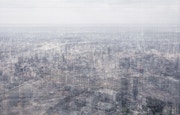 顧剣亨は、複数の写真から1枚のイメージを生み出すdigital weaving という手法で注目された新人。ヴァルター・ベンヤミンの『写真小史』のなかで、有名な「意識の織り込まれた空間の代わりに、無意識の織り込まれた空間が現れる」という箇所からの発想だろう。金糸を織り込んだ布のように、世界には意識も無意識も織り込まれていて、後者はカメラによって現れる、と。つまり世界は意識と無意識の二層構造ではないのだ。同様に、顧の写真も、多重撮影ではない。高層ビルからの東西南北全方位の全景をピクセル単位で1枚に「織り込んだ」作品は、いわば「全世界」の比喩であり、我々の全精神の比喩でもある。その1枚の面=全精神は、刻々と、見た部分と見なかった部分へ、意識と無意識へ、分割され続けている。意識とは、現在時におけるこの分割が過去にしていく(見た、見た……)世界にほかならない。つまり意識には現在という時制がない、これこそ「視覚的無意識」の要点だが、本展はそこまで届いていない。そのほか、暗い石炭の山で、個々の石炭の断面が星のようにひっそりと光る新作も美しい。