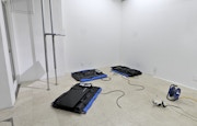 ふたつのマイクロポップ展にも参加した泉太郎は、「Try the Video-Drawing」のために制作した《そんな小さな息で》において、床に伏せられた映像再生機器とギャラリストを延長コードでつなぎ(ながら切断し)、展覧会における「通電」「映像の再生」「作品売買」といった約束事を組み替えるラディカルな操作を提示した。