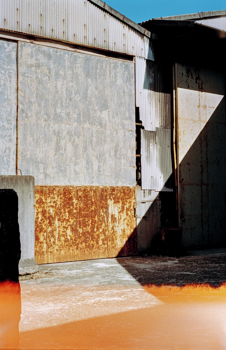 例えば《抽象表現主義的な家》(2020)と題されたいかにもなタイトルの写真作品。トタン壁のストライプに抽象的なリズムを、《ドラム缶の水たまり》(2019)の廃棄物の錆びつきに絵画のマチエールに相当する物質性を見出すことは容易である。《影領域》(2020)のダイアゴナルに射し込む影がつくり出す端正な構図、《千華》(2021)の背景に現れる黄色と赤の絵具の塗りのような色面も、絵画的感性の賜物と言える。ただし注意が必要なのは、城戸が絵画表現の代替物として写真を選んでいるわけではないということだ。絵画で出来ることは絵画でやればいい。写真に絵画性が導入されるのは、写真を一点もののアウラを備えた「アート」へとロンダリングするためではないのだ。つぶさに観察すれば、そこには絵画的な物質性を惹起する色層とセルロイド質の透過層が干渉しあう複雑なレイヤー構造が見てとれるはずである。つづめて言うと、城戸の写真では絵画性と写真性とがどちらに主導権を渡すこともなく相克している。偶然性を導入する受動的態度と構築の意志が絶妙な配合で錯綜していると言い換えてもいい。これらの作品に見出せるのは、写真の写真らしさを絵画性の侵入によって問うメディアの自己批判的な手つきなのではないか。だからこそ逆説的に、城戸の写真は写真でしか成し得ない事態を創出しているように見えるのだ。
