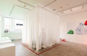 女性に「問診票」なる用紙を渡され、「はい」か「いいえ」かで答える6つの質問にチェックを入れる。「誰かに誘導されることに極度の抵抗を感じる」「過去に死にたいと思ったことがある」という質問で丸をつけるのを躊躇した。催眠療法の一種というそのセラピーを、無防備に受けていいものか。あなたの警戒を言外に読み取った女性が明るい声色で補足を加える。いわく、このサウンド・インスタレーションは「フィクションの上で一度死んで、生まれ変わること」を体験させる作品である。「不快に感じたらいつでも離脱していい」と繰り返し念を押され、あなたはカーテンに仕切られた中央のゾーニング・スペースにするりと身体を滑らせた。一人掛けのソファと2台のスピーカーがあり、上等なクッションに深く腰をうずめ、ヘッドホンを装着する。ヘッドホンからは中島と名乗る男の声が流れ、これからあなたをある体験に向けて誘導(ガイド)するという。「目を閉じて」「リラックスして」「息を吸って吐いて」。ねっとりと耳に絡む声が脳内に侵入してくるようで、意識を奪われたくないあなたはせめてもの反抗で目だけを見開いていた。半透明のカーテン越しに窓の外の風景が見え、代々木駅を通過する複数の電車の走行音が少し遠くに聞こえたが、カーテン越しのそれらはどちらも幻のように稀薄だった。