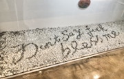 今回の楊博による個展「no tears」はNADiff a/p/a/r/t入り口のウィンドウギャラリーと呼ばれるスペースで開催された。壁面にはイギー・ポップの代表曲「I wanna be your dog」を引用した絵画と、茅ヶ崎の海岸などが描かれた絵画が数点展示され、足元のショー・ウィンドウには敷き詰めた小石で描いた「Don’t say fuck bless me」の文字と絵画で構成されたインスタレーションがある。また販売スペース手前のガラスシェルフにも、イギー・ポップを描いた絵画が並んでいる。