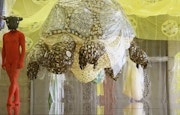 スズ・シアター・ミュージアム「光の方舟」。珠洲市の民俗博物館は、緻密なモノたちの配列と濃密なパフォーマンスを目的とした会場構成で、マーク・ダイオンを彷彿とさせる展示でもある。三宅砂織の映像インスタレーション、久野彩子の鋳金は闇の空間に映え印象深い。まったく性格の異なる作家たちの作品を活かした、息づかいのあるシアターを設計した建築家、山岸綾の手腕に感嘆した。