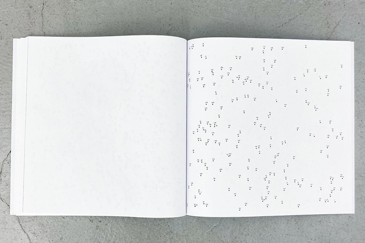 だからだろうか。エキソニモが刊行したこの書籍は、そのタイトルにある通り、ページをめくるごとに増えていくドット(点)に沿って進んでいく。このドットの位置はコンピュータでランダムに決定されており、どの位置にドットを打つかといった作者の意図──通常は美術においてもっとも重要だとされている──は最初から周到に排除されている。ただし、このように順を追って増えていくドットをページに印刷することを、エキソニモが「子供が順番に線を繋いでいくことで絵を描くことができる『点つなぎ』から着想」したとしている通り、ドットを線でつなぐことで、誰もが同じ「絵」を描くことができる。違うのは、子供のための本が、線をつなぐことでなんらかの意味を持つ図像を浮かび上がらせるのに対して、エキソニモの本では順番に点と点を線でつないでも、見えてくるのは抽象的な図形でしかないということだ。これは点の位置と順番が決まっているかぎり、線の太さや色、画材などで偶然程度に多少の違いは出ても、誰が行っても基本的に(必然的に)大きな代わり映えはしない。その意味でもこの「ドローイング」は、個性の表出による独自性を持つことで個的な価値を備えるとしてきた美術作品の概念から大きく離反している。