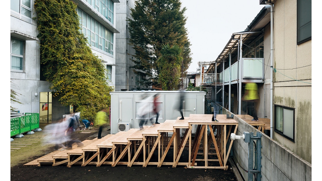 ところが、本展ではそうした制度的・物理的な距離が、両校の壁に木製の「橋」を渡すという、たったそれだけの工夫で、「突然、」乗り越えられている。むろん、支障がまったくなくなったわけではない。実際、橋の仮設は、両校が「対等」になったことを意味しない。それどころか、両校のあいだを自由に行き来できるという自由さは、両者のはらむ非対称性を、むしろ、はるかに具体的に浮き彫りにしている。