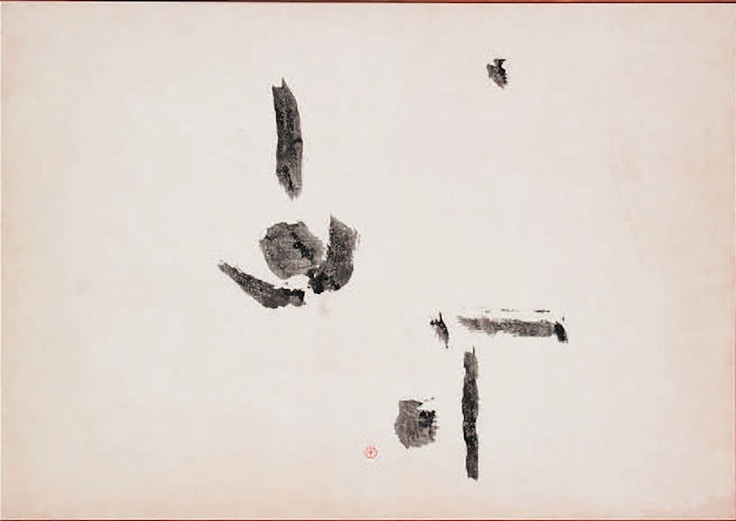 いま先取りと書いたが、この作品が書かれたのは1945(昭和20)年、つまり終戦の年である。いったいいつ内地決戦が始まるとも知れないなかで、このような作品が書けるものなのか、以前から不思議に思っていたが、今回刊行された図録で確認するかぎり、終戦後の作品であるらしい。この作品をひとつの起点として、戦後「前衛書道」が花開いていくことになる──例えば、今年の春に東京オペラシティ アートギャラリーで回顧展が開かれ話題を呼んだ篠田桃紅なども、その流れを汲む。だが、《電のヴァリエーション》は、その後の前衛書道が持つある種の洗練ともまったく異なる趣を持つ。そのことも含め、「書道史上、初めての『文字を書かない書』」(同図録14頁)が誕生するに至った経緯はいったいどのようなものなのか。依然として謎に包まれている部分は多い。
