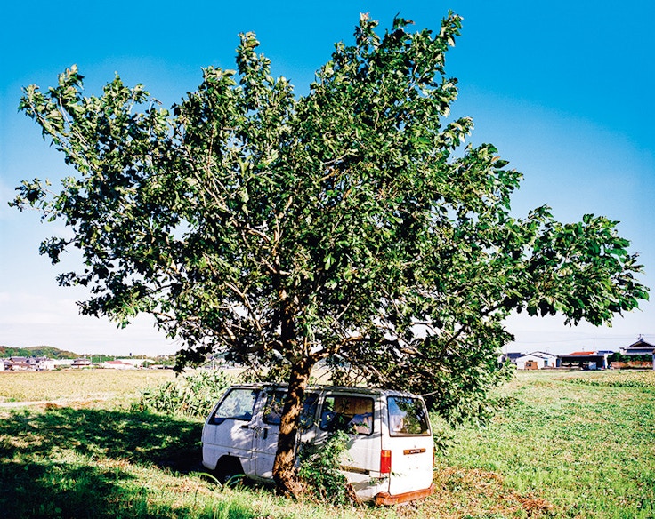 その混乱の方法として縦横に利用されるのが、大型カメラによるアオリ(レンズの光軸に対してレンズ面やフィルム面を動かすこと)と、撮影時の視角を裏切るように施されるトリミングである。城戸は、フレーミング、大型カメラ内でのフレーミング(アオリ)、そして撮影後のフレーミング(トリミング)を連動させて、一見、身近な無人風景のなかに、小さな「?」や「!」を細かい気泡のように発生させる。アオリによるリリパット効果の風景に、通常の距離感の自動車(城戸作品のなかではサイズの指針として機能する)が映っている! 自動車と大木の両方を収める引いた構図のその木の枝の端に、目に見えるサイズ=巨大すぎるトンボが映り込んでいる! 石壁に長い影を落としているはずの枝が見えない! 蝶の影もあるが蝶はどこにも飛んでいない? ……見れば見るほど、名古屋近郊の日常雑景は、眺めるための安定した距離感、つまりは視点(誰が何を見ているのか)を失っていく。城戸が開拓する風景画は、見る人の内面や主観性の投影ではなく、それらの分解である。