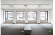 建物に足を踏み入れ、表示に従って向かってすぐを右に曲がり、入り口の壁を越えて会場に入ったが、作品がなにもない。もとからあるままの部屋があるだけだ。バス通りに面した大きな窓は塞がれず、ふだんから交通量がひときわ多いことに加え、最寄りの二条城へのツアー旅行のために停められた大型の観光バスが何台も素通しで見えている。外との近さは、その手前の歩道を歩く、性別も年代も国籍もバラバラな人たちと、たまに目線がじかに合うくらいだ。向こうからすれば、見たところなにもなさそうな部屋で、いったい僕がなにをしているのか気になるのだろう。不思議そうにこちらを気にして、中への入り口を探そうと、来た道を戻る人さえいた。