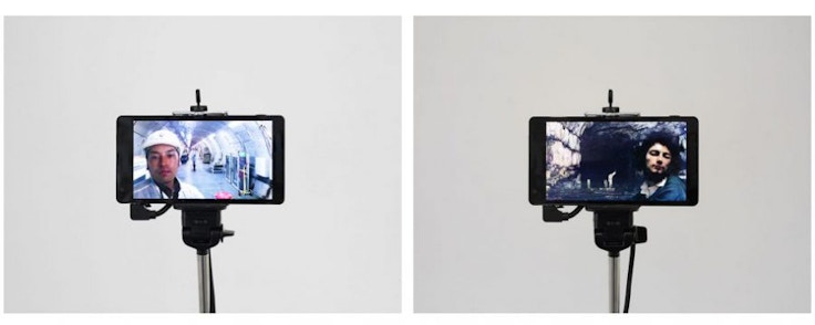 このように竹内はそのデビューから、一貫して自己の分身を進んで設定し、そのもう一人の自己とのずれと重なりを扱ってきた。写真や映像のように、もともとの自己の所在を分裂させ、複製してしまう装置を積極的に使うのは、そのためだろう。それは、今回の「石碑を二度撮る」のように、「自撮り」を多用するかたちで出された一連の作品でも同様だ。個展前日の朝、突然床に作家自身も覚えのない衣服とUSBチップが置かれており、その説明文が作家のメールアドレスから送られてきたという突飛な設定も、その意味では理にかなっている。