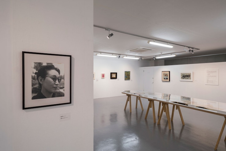 オーナーの志條みよ子自身も文筆家であるため、あわせて展示されている文芸雑誌や案内状の文章などを読みながら展示を見ると、「街」では平和都市・広島に対して言及があるものの、「貌」や「花」では日常に即した言葉やモチーフが並んでいることに気づく。志條が原爆文学論争(*1)などで筆を振るった背景も踏まえると、作品鑑賞に際し広島と戦争を安易に結びつけるのではなく、人々の記憶をいかに単純化させず、記号化させず、消費されないようにしていくか、という問題意識と見てとることもできよう。