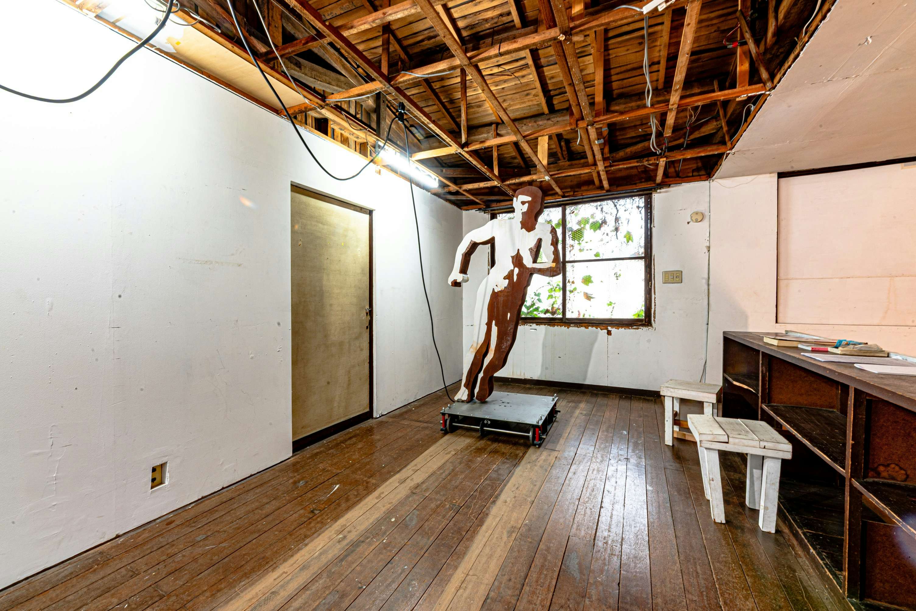 そこに当然のようにある風景は、意識されないまま、集合的な記憶として蓄積される。深田はこれまで、都市の片隅にある朽ちた看板や錆びた鉄骨などを拾い上げ、彫刻化することで風景を再認識させてきた。だが今回の作品では、もはや現実には存在しない「記憶の像」を彫刻にするという新たなフェーズに踏み出している。