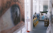 コミュニティセンターに入り、2階に上がると、今度は新長田のシンボルである鉄人28号のモニュメントを見つめる目の写真が展示されている。この写真は、キリスト像を見つめる写真のちょうど裏側に位置する。