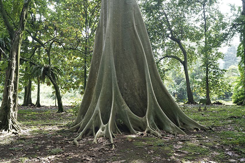 《無題》(2023)は、わずか1分という短さのなかで、本展の構成的な特徴がもっとも端的に現れる作品である。板根と呼ばれる板のように地面に張り出した根や、地面に落ちる枝といった熱帯雨林の植生の断片が、軽快なテンポで切り取られていく。映像では、植物を象徴やメタファーとして読む余地が意図的に抑えられており、むしろ人間が植物を「鑑賞対象」として扱ってきた視線そのものが、静かに揺さぶられる。短いカットと弾むような編集は、重厚な批評性とは異なるかたちで、人間中心的な認識を外部から照らし返している。