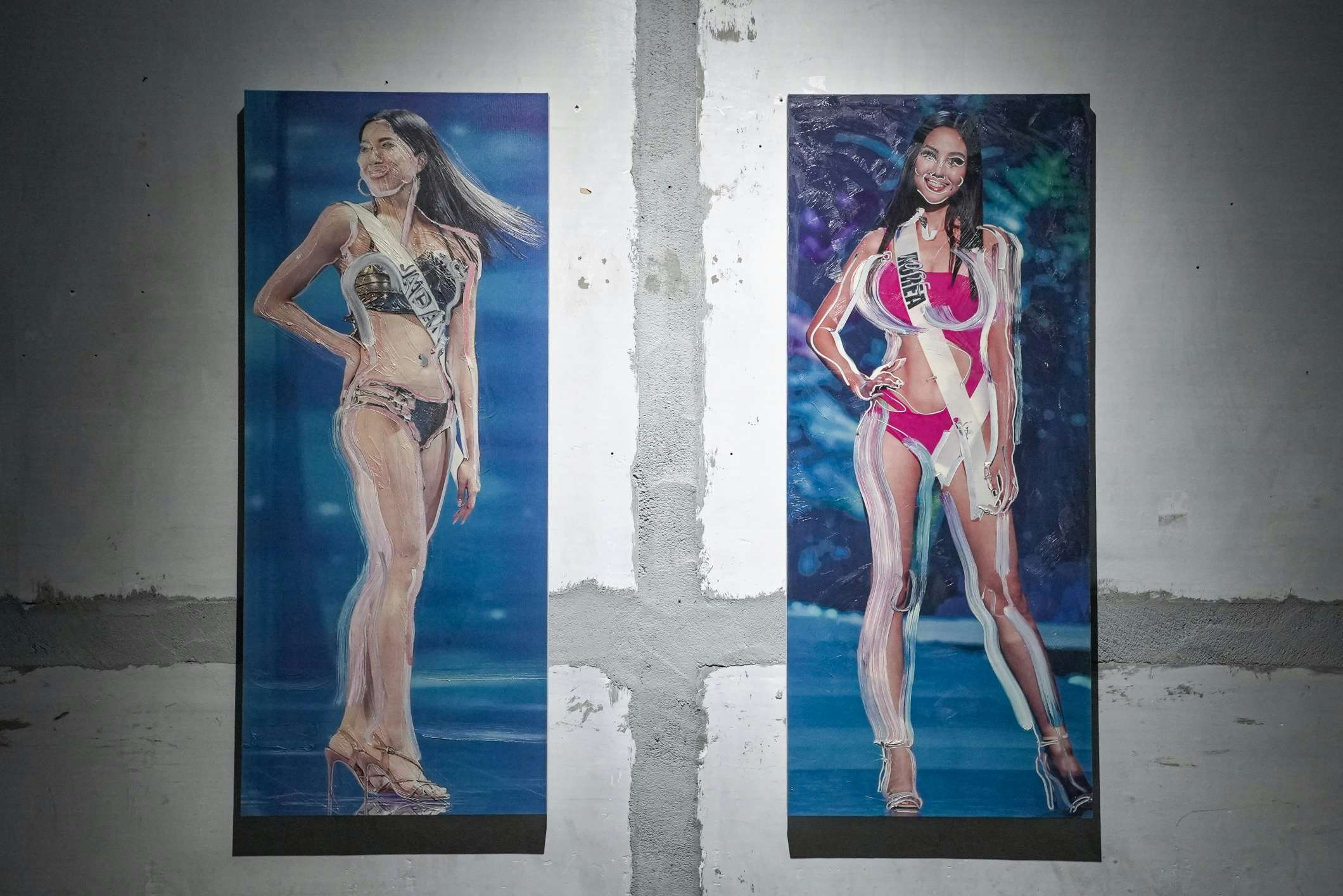 グレッチェン・アンドリュー(Gretchen Andrew)の《Facetune Portraits – Universal Beauty》は、ソーシャルメディア上で一般化したAI美化フィルターの働きを、あえて物質的な絵画表現として可視化する試みである。カスタムロボットは、デジタル空間では不可視のまま適用される「美」の補正を、油彩画の表面に筆跡としてなぞっていく。元となるのは、各地域における典型的な美のイメージであり、それらはひとつのアルゴリズムによって同質化されていく可能性を孕んでいる。加工前の顔と、AIによって理想化された顔が並置されることで、作品には現実の身体と欲望の投影が重なりあう二重の肖像が立ち現れる。そこでは、多様性が削ぎ落とされていく過程が表現されている。筆の揺らぎや滲みは、アルゴリズムが定義する普遍性と、生身の存在とのあいだに生じる緊張と矛盾を、刻み込んでいく。1990年から自身の肉体を使った整形手術のプロセスを「カーナル・アート(肉的芸術)」として発表しているオルランの存在を彷彿とさせる。様々な文化における美の基準に合わせて自らの身体を変容させるパフォーマンスを行いながら、国家や文化あるいは性差を超えて人間というアイデンティティに対する批判的な表現を行ってきたオルランの作品より約35年が経過しているが、AIを用いた今日の表現が《Facetune Portraits – Universal Beauty》からは読み取れる。