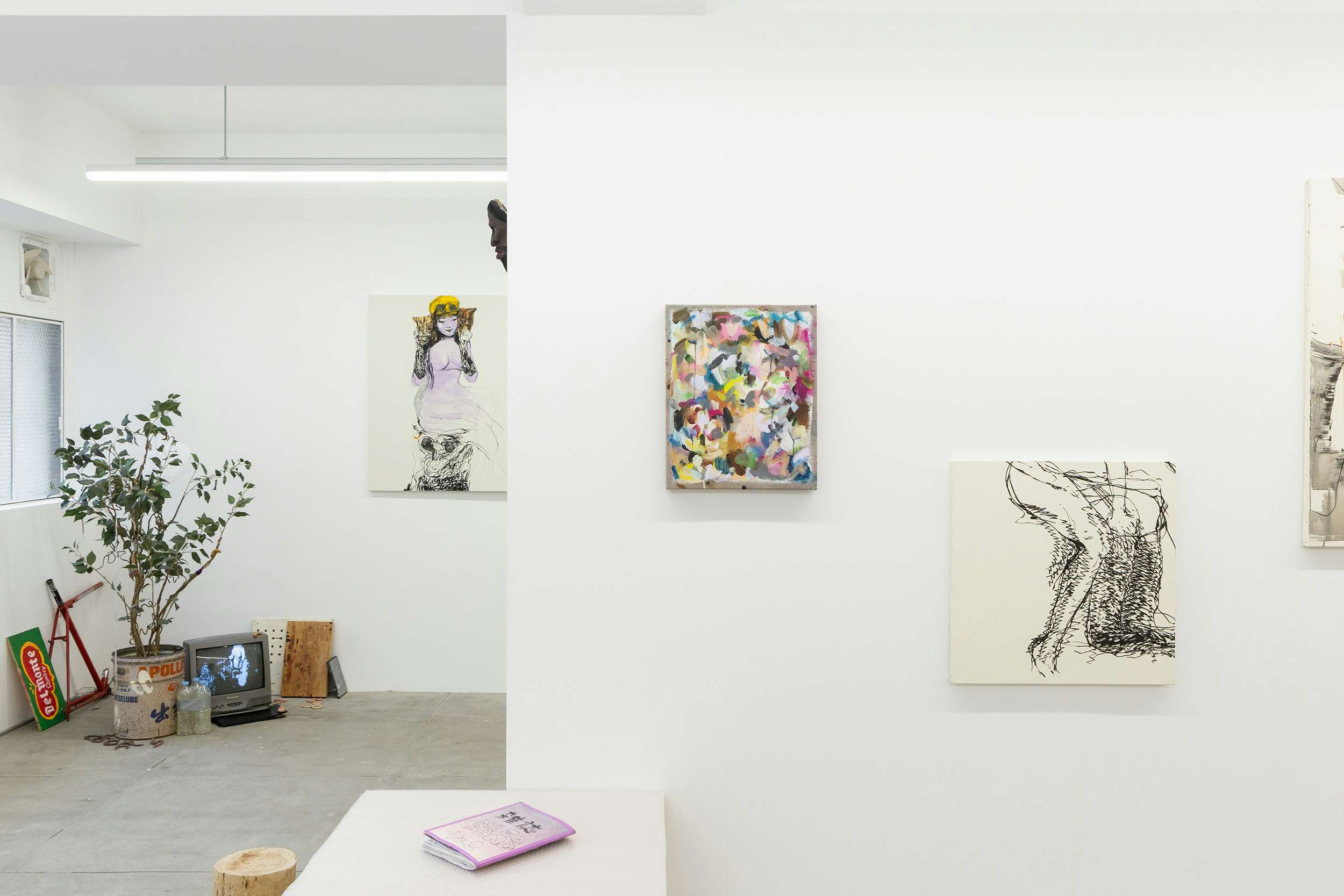 これらの作品が同一空間に並置されることで、展示室は完成された作品の陳列場ではなく、都市の混沌がそのまま移植されたような場となった個々の作品は異質でありながら、互いに干渉し合い、重なり合う。