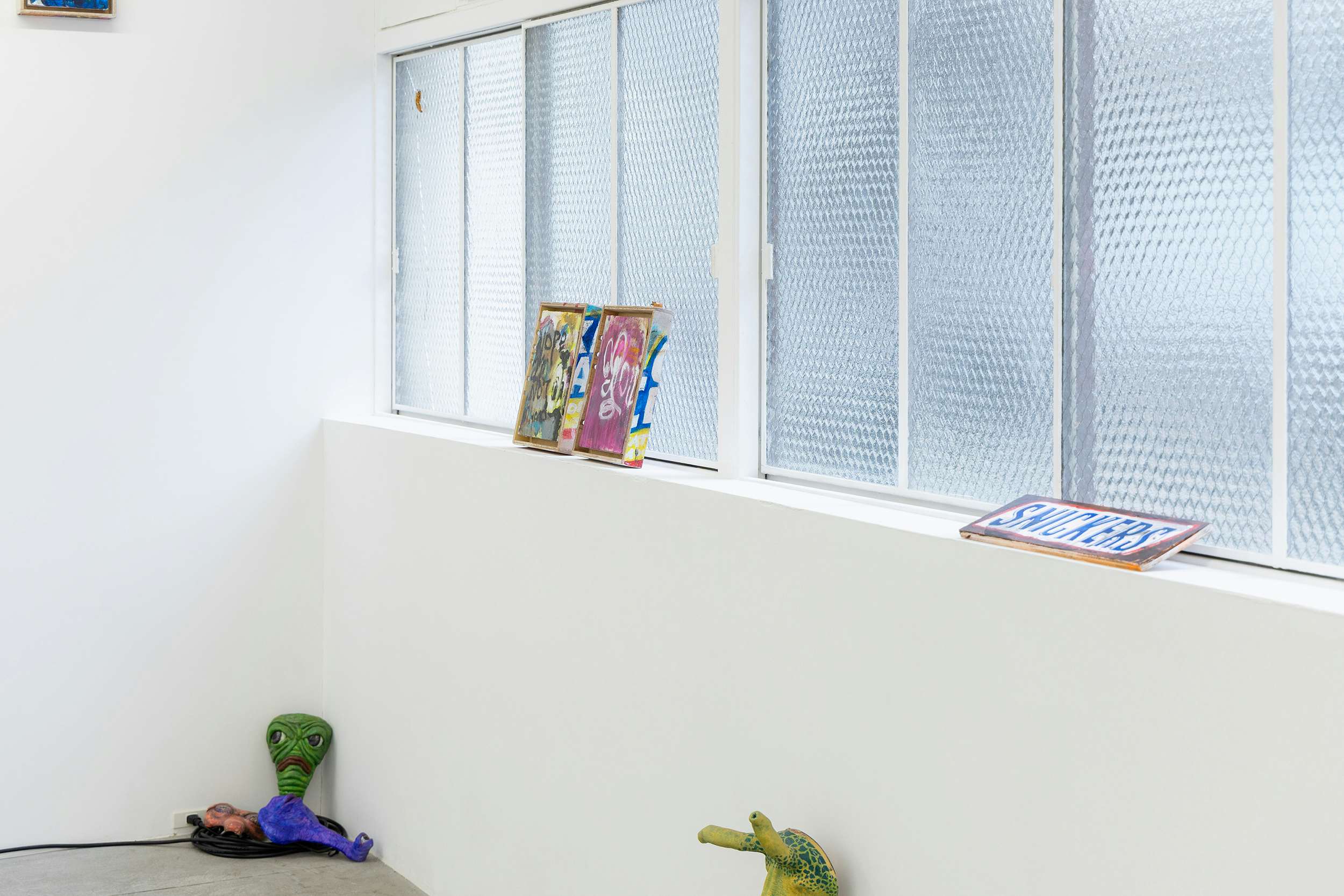 その点を踏まえると、なるほどたしかに展示空間がいわゆるホワイトキューブでの作品の陳列には見えない。それもあって、どの作品がどのアーティストのものかが一見して判別できなかった。どれが作品として個別に成立しているのかもわからなかった。会場で配布されたフロアマップを凝視してようやく作者がわかる。特段作品同士のテイストが似ているわけではないにもかかわらず、鑑賞者はどこか秩序を揺さぶられる感覚に陥る。だがそれはむしろ、誰が何をつくったのかが見えにくいまま無数の痕跡に囲まれて歩くという、都市そのものの経験が再現されていたのではないか。