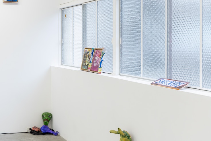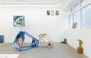 KINJOは出展作家である大塚諒平とともに、荒川での野外展示「Riverside pocket」を行ってきた。そこでは、人々の生活動線のすぐ横に作品が置かれ、偶然その作品に出くわした鑑賞者、その作品と周囲の環境との緩やかなつながりが生まれた。つまり、「場」とはあらかじめ存在する場所ではなく、人・作品・環境が交差する出来事として立ち上がるものであるということを、このタイトルは意味しているのだろう。本展は、この野外での実践をギャラリーという室内空間に移し替えること──すなわち「屋外の出来事としての場」を屋内で再構成すること──を出発点としていた。