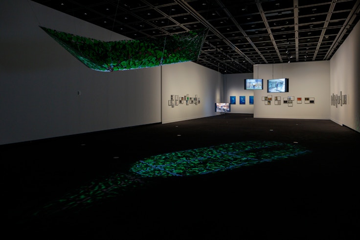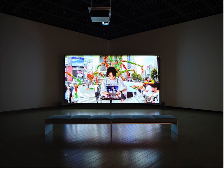 いっぽう、チョン・ソジョンの《シンコペ》(2023)は、ラテンアメリカ原産の着生植物エピフィルムを用い、異なるかたちの「移動」を語る。デジタル空間に広がるエピフィルムは、物理的制約を超え、境界を越えて伸びていく現代人の生き方を象徴している。韓国生まれでフランスに養子として渡り、のちにインドネシアへ移住したガムラン奏者と、日本生まれで朝鮮半島で伽倻琴(カヤグム)を学び、ソウルに定住した在日コリアン三世の演奏者。彼らの軌跡は、国境を横断する流動の縮図である。