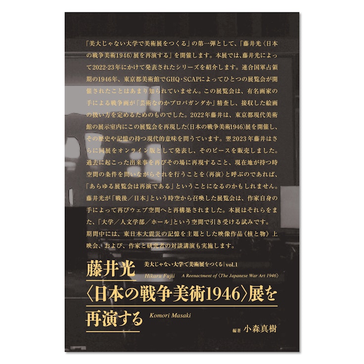 2022年に東京都現代美術館で初披露された藤井光の「日本の戦争美術1946」展を、「美術大学ではない」武蔵大学で再演した展覧会の記録集。藤井の作品を購入して上演権を得た著者が、設営、宣伝などあらゆる展覧会業務を取り仕切り、アーティストの翻案による「歴史をめぐる語り」をミュージアムの外へと開いた。星野太、香川檀をゲストに招いたシンポジウムの記録では、藤井作品における歴史研究の作品化の手法、震災などの記憶の継承問題といったトピックが議論され、本展における「再演」の意義をより鮮明にする。(中島)